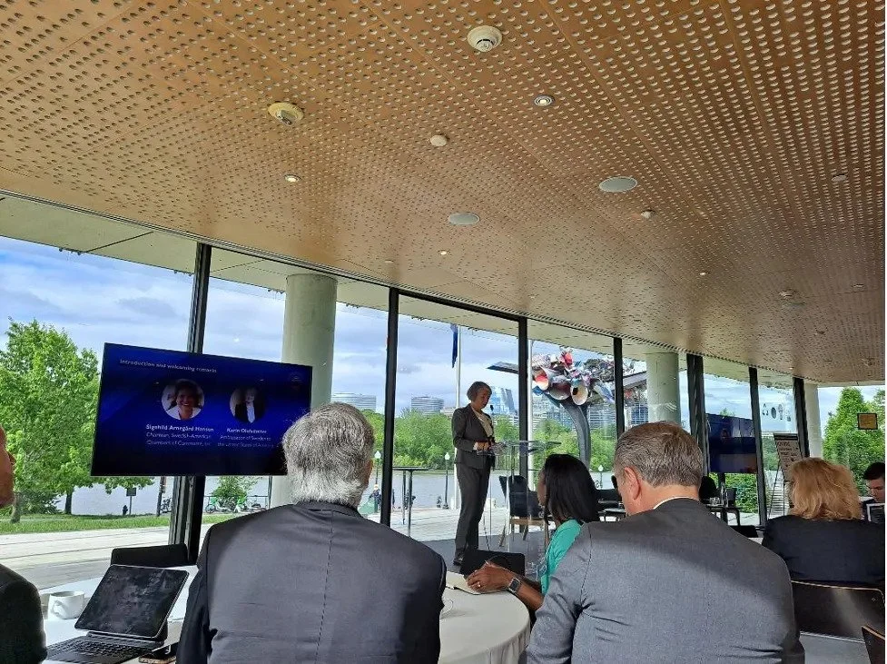 Swedish Ambassador to the United States Karin Olofsdotter speaks before a national security panel at House of Sweden in Washington, DC on May 4 (Photo: author)