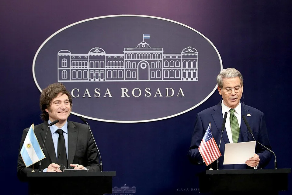 US Treasury Secretary Scott Bessent with Argentinian President Javier Milei on April 15, 2025. (Phil Roeder, CC BY 2.5 AR)